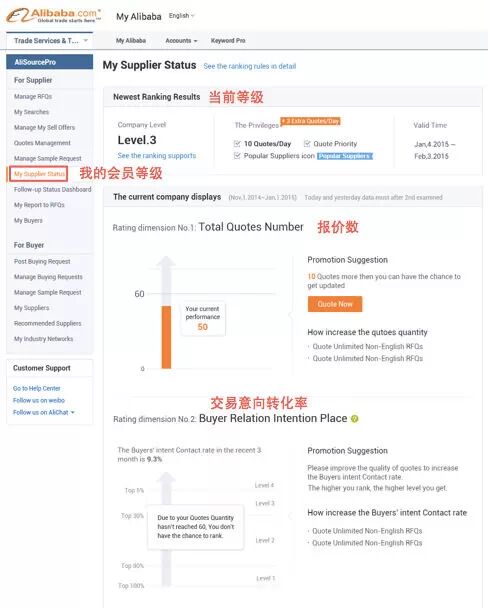 注3: “报价优先推荐”指该公司报价在买家My Alibaba后台的报价列表中排序优先,Level 4先于Level 3, 同一等级则按时间排序